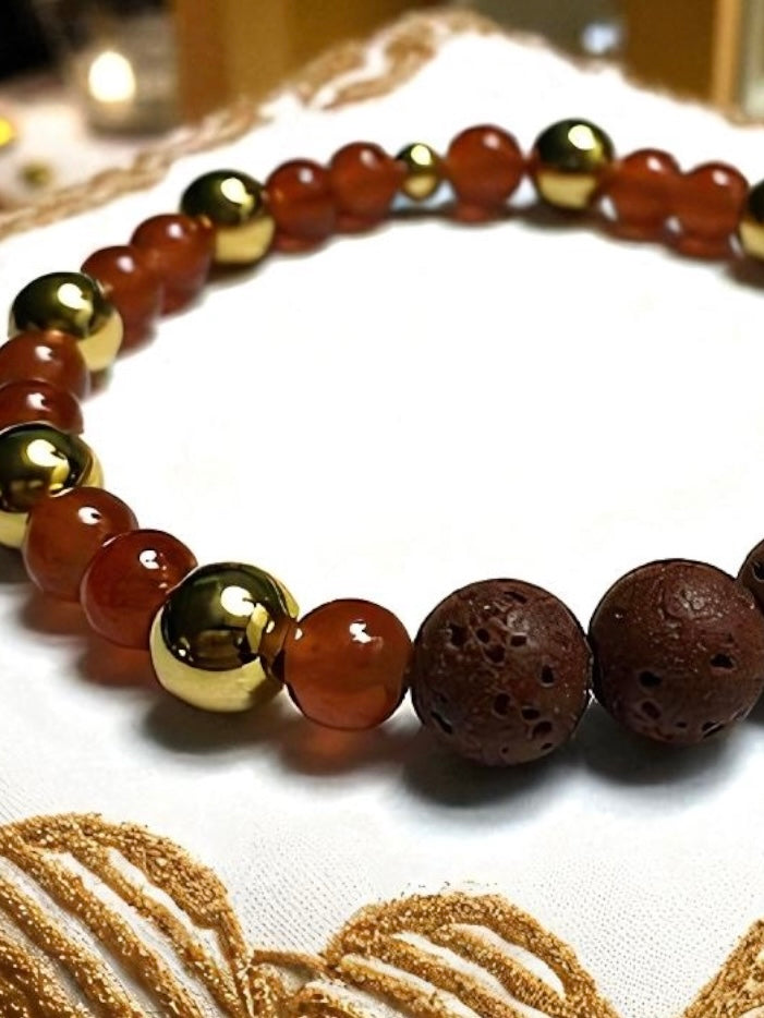 Artisan Bronze / Orange Gold Lava Beaded Bracelet