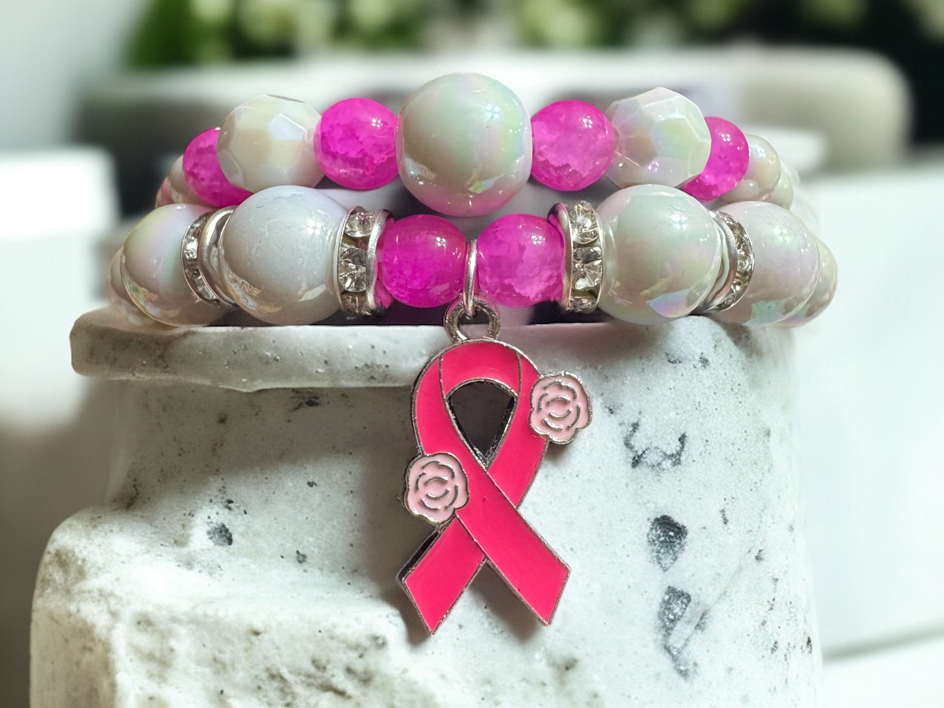 Breast Cancer Awareness Beaded Bracelet Set