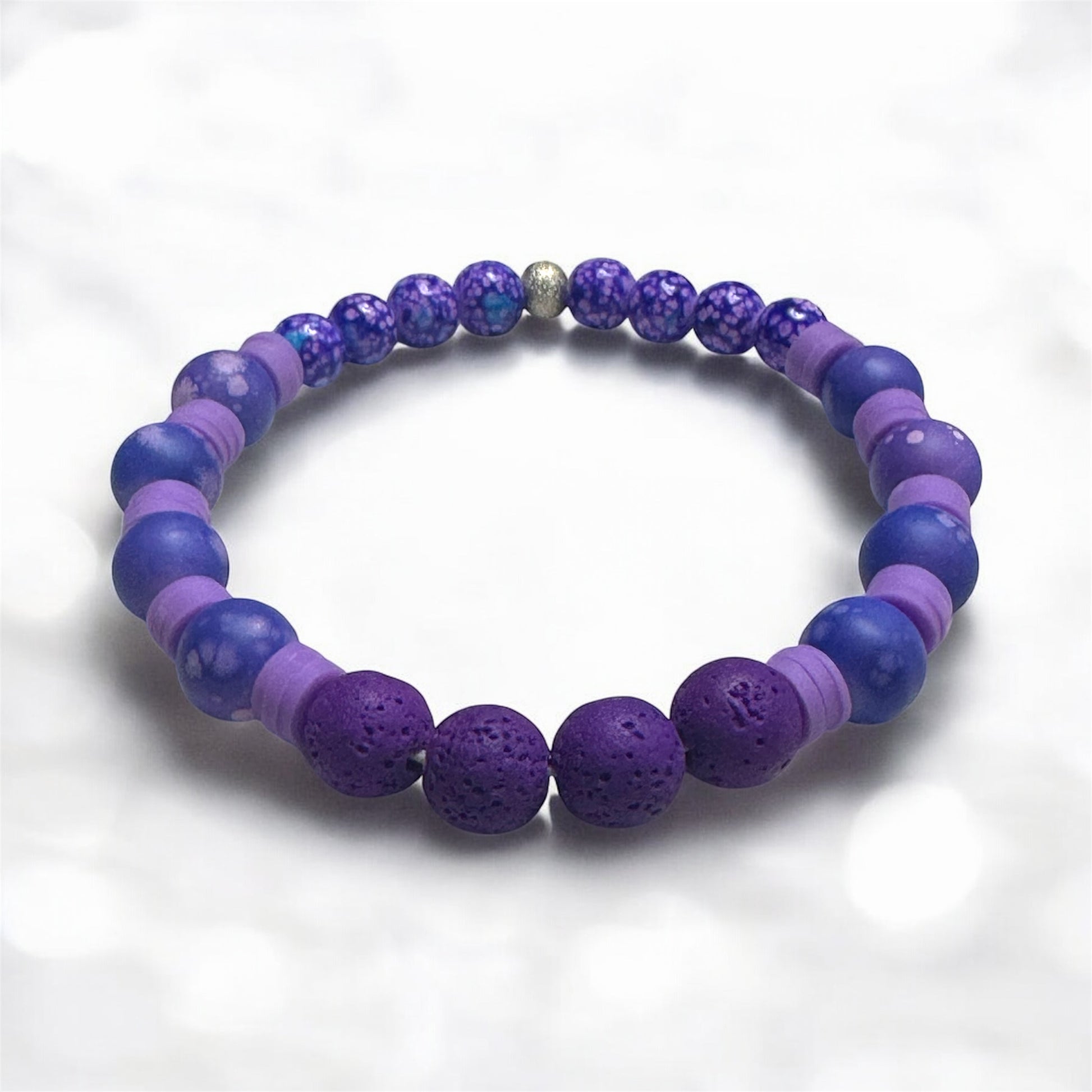 Show off your love for purple with our unique Lava Beaded Bracelet! The 7"-7.5" stretch cord design features beautiful purple beads, including special lava beads that can hold your favorite essential oil. Be one of a kind with this dazzling accessory! No replicas!