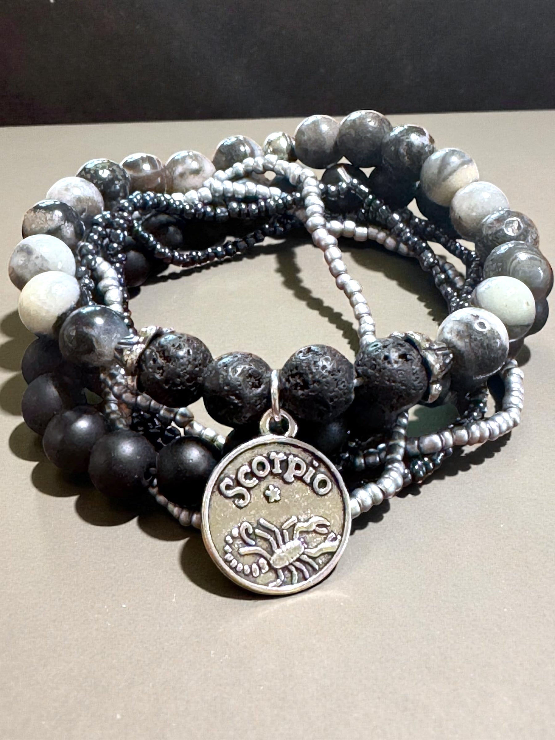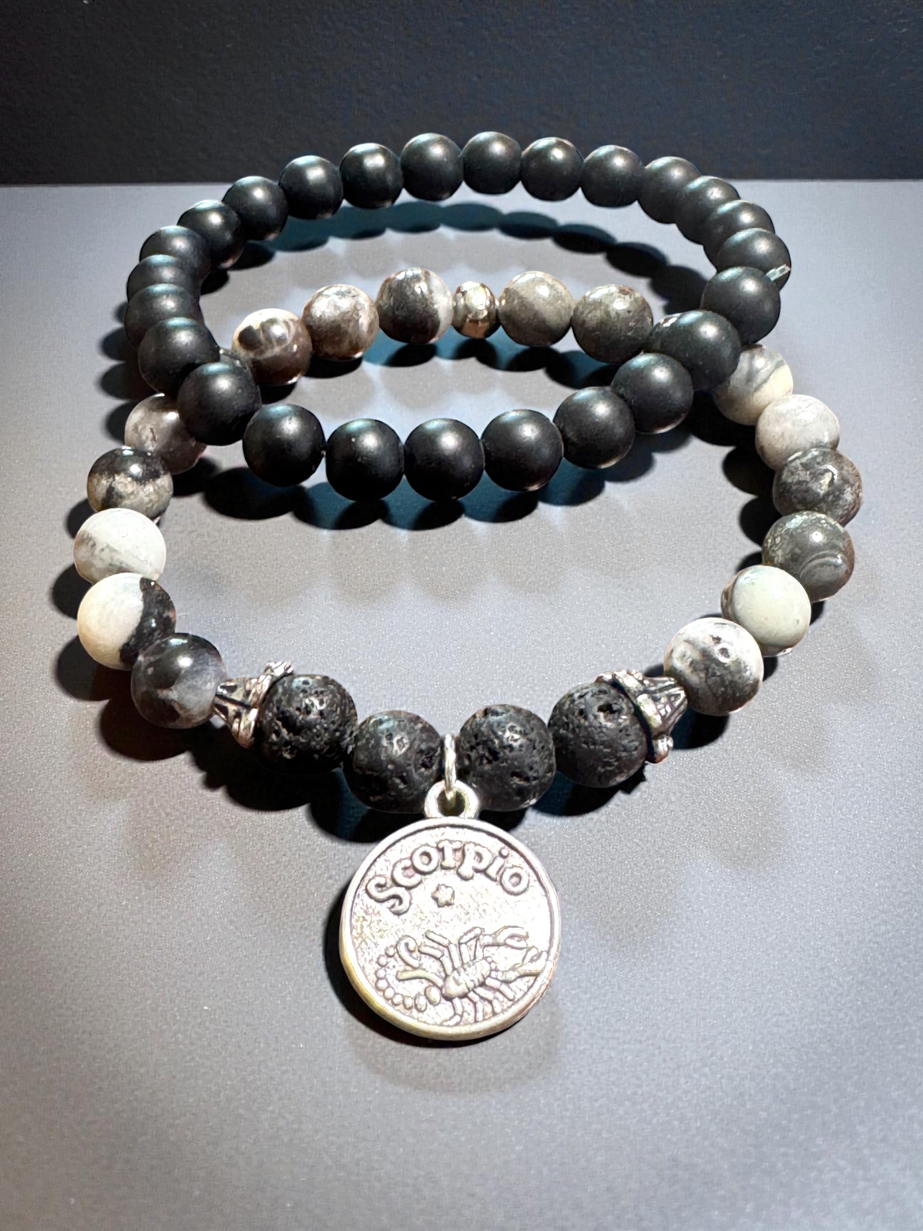 Scorpio Lava Beaded Bracelet 7”- 7.5” Fit
